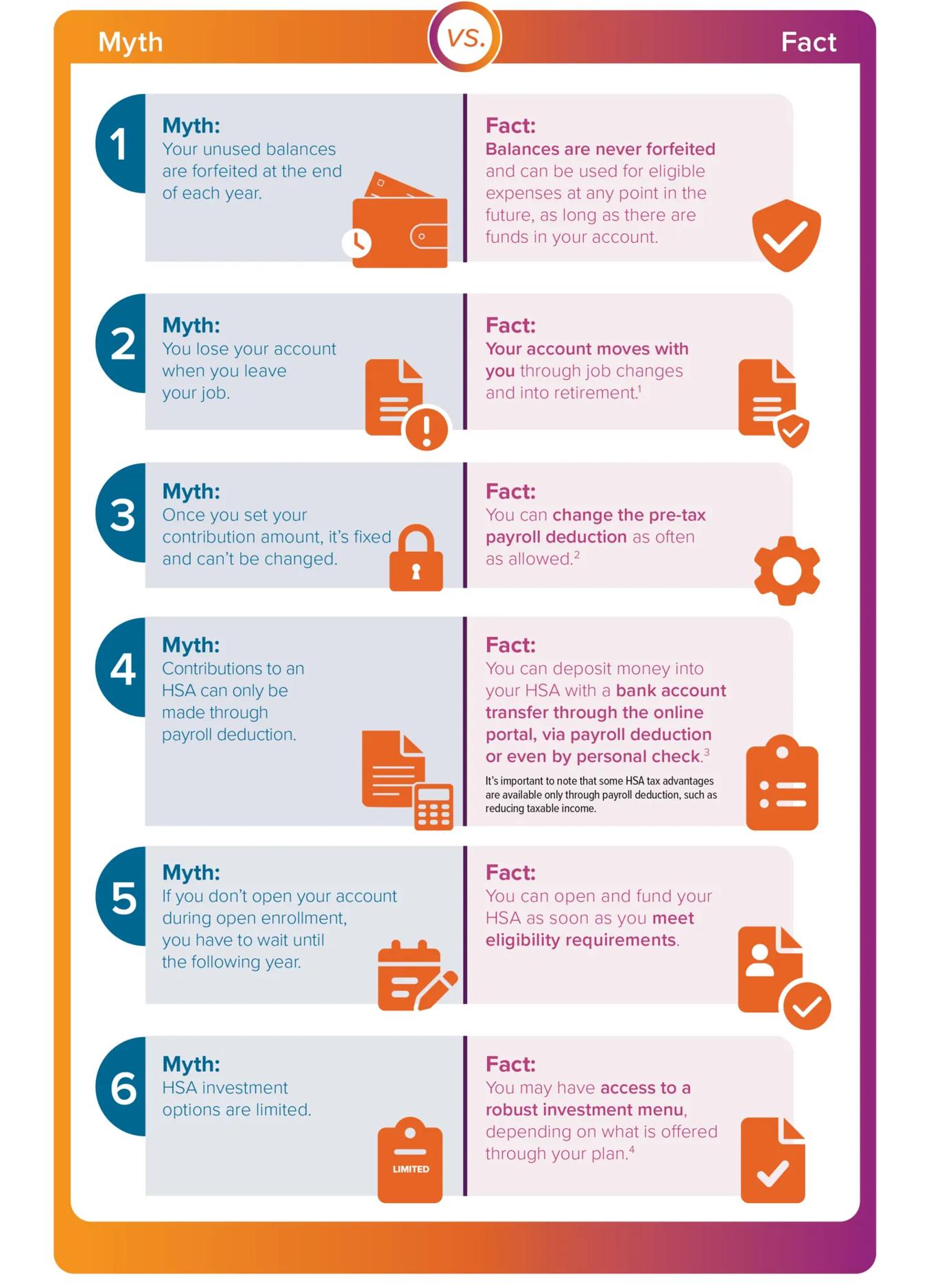 Fact: Balances are never forfeited and can be used for eligible expenses at any point in the future, as long as there are funds in your account.